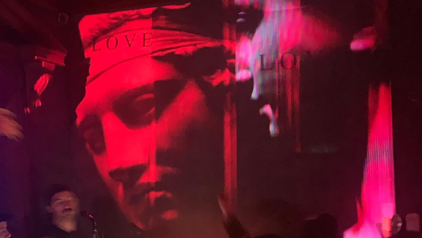 4 monitors, digital art, gold mirror wall, neon LED sculpture